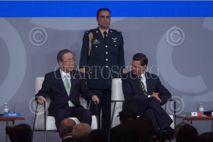 MÉXICO, D.F., 15ABRIL2014.- Ban Ki-moon, secretario general de la ONU, junto a Enrique Peña Nieto, Presidente de la República durante la Primera Reunión de Alto Nivel de la Alianza Global para la Cooperación Eficaz al desarrollo. FOTO: ENRIQUE ORDÓÑEZ /CUARTOSCURO.COM