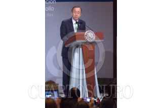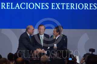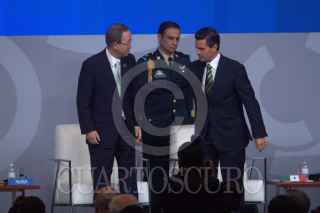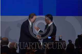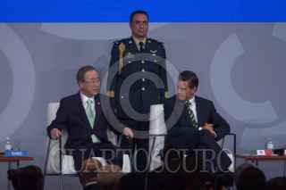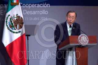 MÉXICO, D.F., 15ABRIL2014.- Ban Ki-moon, secretario general de la ONU, junto a Enrique Peña Nieto, Presidente de la República durante la Primera Reunión de Alto Nivel de la Alianza Global para la Cooperación Eficaz al desarrollo. FOTO: ENRIQUE ORDÓÑEZ /CUARTOSCURO.COM