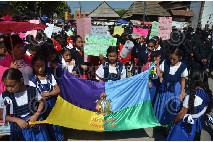 CHERÁN, MICHOACÁN, 15ABRIL2014.- Indígenas Purépechas festejaron el tercer aniversario del levantamiento del pueblo en contra de la tala ilegal y del crimen organizado, así como también celebraron la formación de su propio gobierno regido por usos y costumbres. FOTO:ALAN ORTEGA /CUARTOSCURO.COM