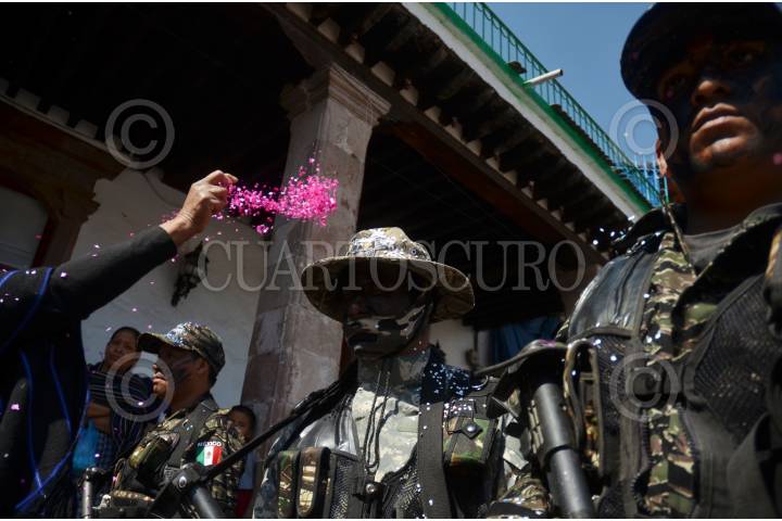CHERÁN, MICHOACÁN, 15ABRIL2014.- Indígenas Purépechas festejaron el tercer aniversario del levantamiento del pueblo en contra de la tala ilegal y del crimen organizado, así como también celebraron la formación de su propio gobierno regido por usos y costumbres. FOTO:ALAN ORTEGA /CUARTOSCURO.COM