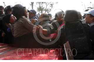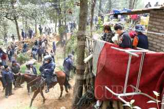 MÉXICO DF 20DICIEMBRE2005.- La policia de la SSP llevó a cabo un desalojo de habitantes irregulares en la zona de la cañada, en el segundo Dinamo . En los enfrentamientos resultaron lesionadas tres personas FOTO: Pedro Marrufo/CUARTOSCURO.COM