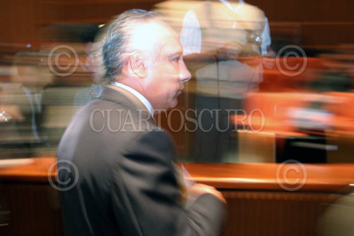 MEXICO, D.F., 21DICIEMBRE2005.- Emilio Gamboa Patrón, senador del PRI y Helidoro Díaz, diputado del PRI, durante la sesión de la Comisión Permanente en la Cámara de Diputados. FOTO: Moisés Pablo/CUARTOSCURO.COM
