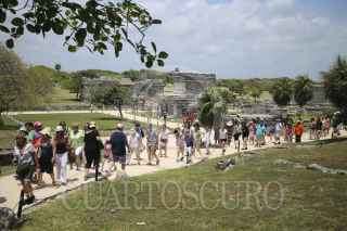 TULUM, QUINTANA ROO, 16ABRIL2014.- Miles de Turistas nacionales y extranjeros visitan las ruinas arqueológicas de Tulum en este periodo vacacional de semana santa, la ocupación hotelera en Quintana roo se encuentra al 90 por ciento. FOTO: ELIZABETH RUIZ /CUARTOSCURO.COM