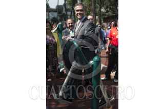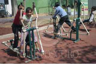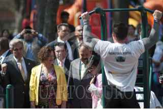 MÉXICO, D.F., 16ABRIL2014.- En el Parque Juana de Asbaje fue inaugurado el programa social "Gimnasio Urbano" que consiste en ofrecer actividades gratuitas en las que la población se ejercite. FOTO: IVÁN STEPHENS /CUARTOSCURO.COM