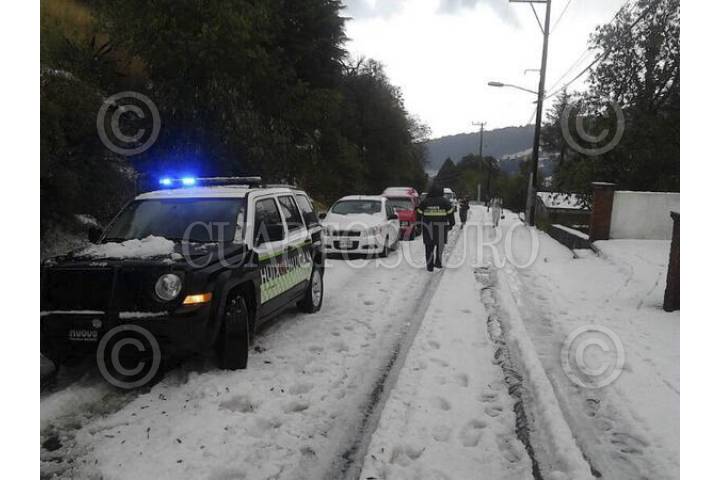 MÉXICO D.F; 17ABRIL2014.- Personal del Ejército, Policía Federal, Estatal y local, así como de Protección Civil y Cruz Roja, relazaron labores de limpieza en las carreteras que conectan la capital del Estado de México con el Distrito Federal, la cual quedo tapizada en Granizo de la intensa tormenta que azoto ayer la zona de Cuajimalpa. Dejando varados cientos de vehículos en ambos sentidos. Alrededor de las 5 AM se logro habilitar un carril en estas carreteras para desahogar el tráfico, apoyado por trascabos y palas para retirar el hielo de la carpeta asfáltica de estas carreteras. FOTO: LUIS CARBAYO /CUARTOSCURO.COM