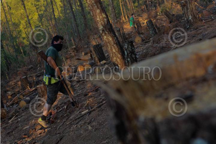 NAHUATZEN, MICHOACÁN, 17ABRIL2014.- En el pueblo de Sevina, siguiendo el ejemplo del cercano pueblo de Cherán, comuneros se organizan contra la tala ilegal de arboles, entre ellos el Pinacate, por parte de pobladores de la comunidad vecina de Comachuen. Después de mas de dos años de que los de Comachuen traspasen los límites del monte que dividen una comunidad de la otra para talar la parte perteneciente a Sevina y, después de haber dado aviso a la Sedena y a la Policía Estatal y no haber recibido apoyo, los comuneros han creado su Ronda Comunitaria para proteger lo que queda de sus bosques. FOTO: PEDRO ANZA / CUARTOSCURO.COM