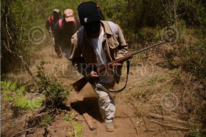 NAHUATZEN, MICHOACÁN, 17ABRIL2014.- En el pueblo de Sevina, siguiendo el ejemplo del cercano pueblo de Cherán, comuneros se organizan contra la tala ilegal de arboles, entre ellos el Pinacate, por parte de pobladores de la comunidad vecina de Comachuen. Después de mas de dos años de que los de Comachuen traspasen los límites del monte que dividen una comunidad de la otra para talar la parte perteneciente a Sevina y, después de haber dado aviso a la Sedena y a la Policía Estatal y no haber recibido apoyo, los comuneros han creado su Ronda Comunitaria para proteger lo que queda de sus bosques. FOTO: PEDRO ANZA / CUARTOSCURO.COM