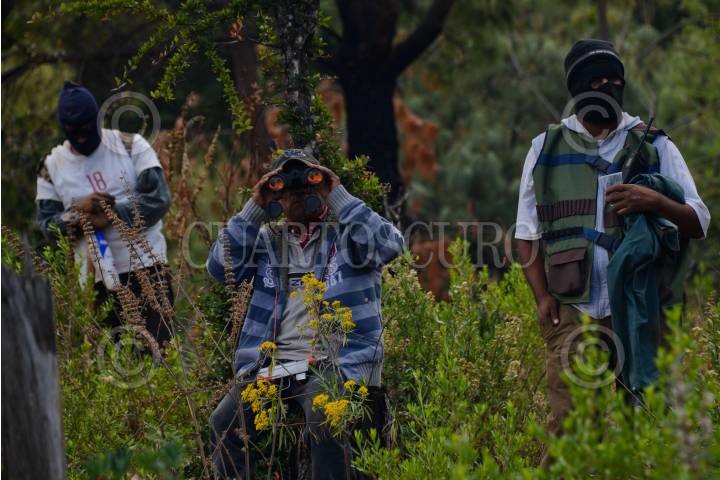 NAHUATZEN, MICHOACÁN, 17ABRIL2014.- En el pueblo de Sevina, siguiendo el ejemplo del cercano pueblo de Cherán, comuneros se organizan contra la tala ilegal de arboles, entre ellos el Pinacate, por parte de pobladores de la comunidad vecina de Comachuen. Después de mas de dos años de que los de Comachuen traspasen los límites del monte que dividen una comunidad de la otra para talar la parte perteneciente a Sevina y, después de haber dado aviso a la Sedena y a la Policía Estatal y no haber recibido apoyo, los comuneros han creado su Ronda Comunitaria para proteger lo que queda de sus bosques. FOTO: PEDRO ANZA / CUARTOSCURO.COM