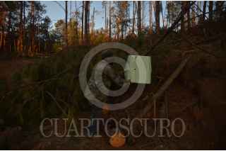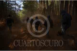 NAHUATZEN, MICHOACÁN, 17ABRIL2014.- En el pueblo de Sevina, siguiendo el ejemplo del cercano pueblo de Cherán, comuneros se organizan contra la tala ilegal de arboles, entre ellos el Pinacate, por parte de pobladores de la comunidad vecina de Comachuen. Después de mas de dos años de que los de Comachuen traspasen los límites del monte que dividen una comunidad de la otra para talar la parte perteneciente a Sevina y, después de haber dado aviso a la Sedena y a la Policía Estatal y no haber recibido apoyo, los comuneros han creado su Ronda Comunitaria para proteger lo que queda de sus bosques. FOTO: PEDRO ANZA / CUARTOSCURO.COM