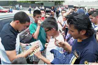 MÉXICO, DF., 17ABRIL2014.- Darío Verón, jugador de los Pumas ofreció autógrafos a los fanáticos que esperaban afuera del Estadio CU. Este domingo el equipo universitario del Pumas UNAM se disputará contra las Chivas del Guadalajara. En conferencia, Efraín Velarde apodado “El Chispa” mencionó que él observa a una Chivas más radical desde que llegó a la directiva Ricardo Lavolpe. “Estoy seguro de que todos en el equipo esperamos mejores goles, un partido mucho más dinámico y con gran rivalidad entre los dos equipos”. “El Chispa” festejará su cumpleaños mañana. FOTO: MARÍAJOSÉ MARTÍNEZ / CUARTOSCURO.COM