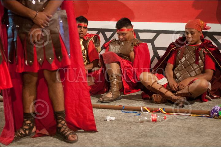 MÉXICO, D.F. 17ABRIL2014.- Se efectuo la 171 representación de la Semana Santa en la explanada de la delegación Iztapalapa, durante el Jueves Santo se escenificaron algunos pasajes bíblicos importantes. Este año Cristo es representado este año por Eduardo Guzmán Flores, quien encabezó las escenas de la Ultima Cena, parte donde descubren que Judas traiciona a Jesucristo. FOTO: DIEGO SIMÓN SÁNCHEZ /CUARTOSCURO.COM