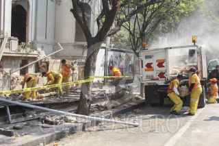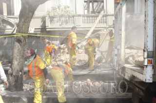 MÉXICO, D.F., 17ABRIL2014.- Debido al sismo oscilatorio de 7.2 grados Richter que sacudió la Ciudad de México durante aproximadamente un minuto, se derrumbo una barda de una casa ubicada en la calle de Londres y Berlin en la colonia Juarez. FOTO: SAÚL LÓPEZ /CUARTOSCURO.CO