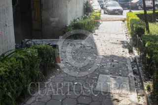 MÉXICO, D.F., 18ABRIL2014.- En el edificio Coahuila de Tlatelolco se cayo la mampostería y se rompieron vidrios debido al temblor de 7.2 en la escala de Richter que sacudió esta mañana a la ciudad de México. FOTO: MOISÉS PABLO /CUARTOSCURO.COM