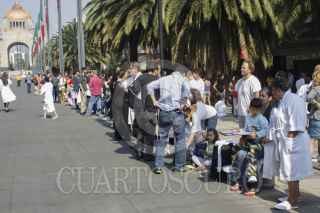 MÉXICO, D.F., 18ABRIL2014.- Huéspeds del hotel Krystal Grand Reforma permanecieron por varios minutos afuera del edificio en lo que el personal de protección civil revisaban si el inmueble no había sufrido daños estructurale. FOTO: MOISÉS PABLO /CUARTOSCURO.COM