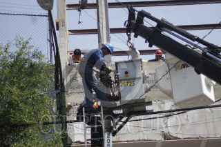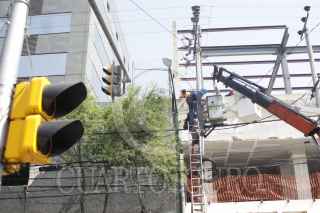 MÉXICO, D.F., 18ABRIL2014.- Un transformador ubicado en la calle de Durango casi esquina de avenida Revolución se colgó debido al temblor de 7.2 en escala de Richter que sacudió a la ciudad por la mañana. Trabajadores de la CFE aseguraron el transformador. FOTO: MOISÉS PABLO /CUARTOSCURO.COM