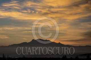 MEXICO, D.F., 19ABRIL2014.- Vista del volcán Iztaccihuátl desde la delegación Milpa Alta al amanecer. FOTO: DAVID POLO /CUARTOSCURO.COM