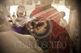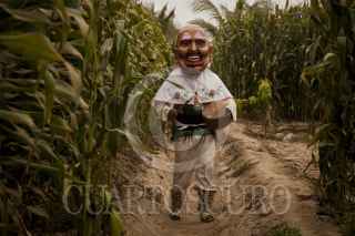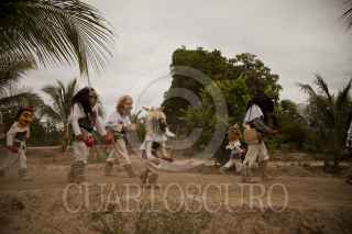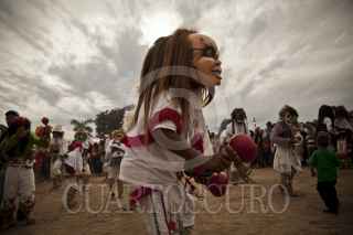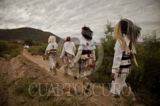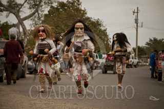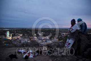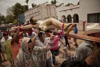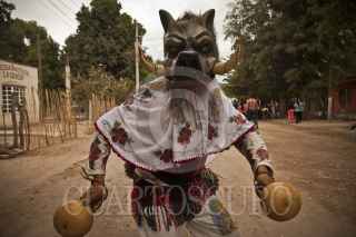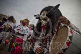 AHOME, SINALOA, 19ABRIL2014.- Miles de personas de origen indígena Mayo -Yoreme se dieron cita en el poblado de San Miguel Zapotitlán, para representar el viacrucis de Jesús, en la semana mayor donde observamos el ritual católico mezclado con danzas y cantos relacionados con el venado y judíos o fariseos, esto debido a la evangelización por parte de los jesuitas. Esta festividad es considerada la mas importante que se celebra al norte de Sinaloa ya que año tras año mas personas se suman, especialmente niños. Los judíos y fariseos llevan puestas mascaras que originalmente eran de piel de cabra, la cual sirve para conservar el anonimato y representan los cascos de los romanos en forma de ridiculización, en la actualidad las mascaras han tomado diferentes formas, las carrilleras una Falda hilada con piola bordada, con carrizos se coloca a la cintura su función es producir un sonido espectacular al caminar, correr y danzar, los Tenabaris son Capullos de mariposa secos, cocidos en brazadas en los que previamente se deposita una piedra para el sonido que son puestos en los pies, la capa es un manto bordado con imágenes religiosas le da al judío elegancia, el tambor de cuero produce el sonido para la danza del judío y una lanza para protegerse de los animales durante las corridas. Las mujeres se visten de blanco y llevan flores en un pañuelo y se les conoce como marías, la celebración empieza con el domingo de ramos, los judíos bendicen palma en la iglesia, el miércoles de ceniza a las 12 de la noche los judíos entran a la iglesia y sacan a el señor, y lo meten a la cárcel, el jueves santo se hace un conti en la tarde, el viernes santo los judíos se van a las corridas por las mañanas, tumban cruces que están en casas en busca de Cristo para darle muerte, al por la tarde se un hace un conti en el centro ceremonial ,al señor ya lo crucificaron, el sábado de gloria se corre porque el señor resucito, los arrepentidos esperan para poder entrar a la iglesia para ser bendecidos y quemar las mascaras en forma de arrepentimiento por haber entregado a Jesús para la crucifixión, para el domingo se celebra la corrida de santos en honor a la resurrección de Cristo, durante las corridas se recorren varios poblados aledaños al centro ceremonial, en donde año tras año mas personas realizan esta actividad, para cumplir sus mandas, por los favores cumplidos. FOTO: RASHIDE FRIAS /CUARTOSCURO.COM