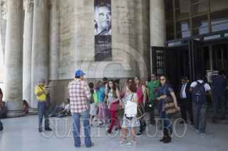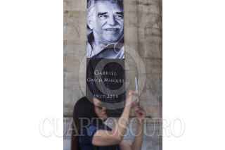 MÉXICO, DF., 20ABRIL2014.- En la entrada al Palacio de Bellas Artes, se pueden observar Fotografias de Gabriel Garcia Marquez, previo a el homenaje que se le realizara el dia de mañana. FOTO: ENRIQUE ORDÓÑEZ /CUARTOSCURO.COM