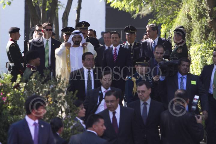 MÉXICO D.F., 21ABRIL2014.- Luis Videgaray titular de la secretaria de Hacienda y Gerardo Ruiz Esparza, Secretario de Comunicaciones y Transportes, al final de la ceremonia de bienvenida oficial del Jeque Mohammed Bin Rashid Al Maktoum, Primer Ministro y vicepresidente de los Emiratos Árabes Unidos, en la explanada Francisco I. Madero de la Residencia oficial de los Pinos. FOTO: GUILLERMO PEREA /CUARTOSCURO.COM