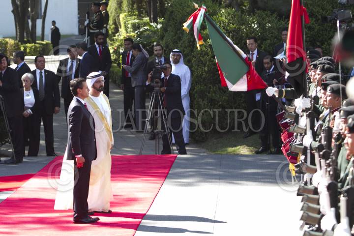 MÉXICO D.F., 21ABRIL2014.- Luis Videgaray titular de la secretaria de Hacienda y Gerardo Ruiz Esparza, Secretario de Comunicaciones y Transportes, al final de la ceremonia de bienvenida oficial del Jeque Mohammed Bin Rashid Al Maktoum, Primer Ministro y vicepresidente de los Emiratos Árabes Unidos, en la explanada Francisco I. Madero de la Residencia oficial de los Pinos. FOTO: GUILLERMO PEREA /CUARTOSCURO.COM