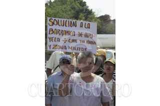 CHILPANCINGO, GUERRERO, 21ABRIL2014.- Habitantes del callejón del Tío Nacho bloquearon las laterales del encauzamiento del río Huacapa, y pidieron el desazolve de la barranca de Alpuyeca, así como la reparación de la red de drenaje afectadas por la tormenta Ingrid y el huracán Manuel. FOTO: JOSÉ I. HERNÁNDEZ /CUARTOSCURO.COM