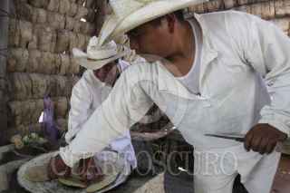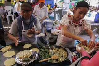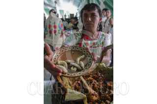 SANTIAGO DE ANAYA, HIDALGO 21ABRIL2014.- Se llevó a cabo la edición de la 34 Feria Gastronómica de comida regional en este municipio. Desde hace 34 años un grupo de comunitarios comenzaron a compartir sus guisos elaborados con animales y plantas endémicas, derivando en un concurso gastrónomico para algunos exóticos, para otros lo único que tal vez se pueda encontrar en esta zona hidalguense del Valle del Mezquital. En ella se pueden degustar comidas elaboradas con ardilla, zorrillos tlacuache, zorro, guajolote; gusanos de maguey, chinicuiles y chicharras, de mezquite (xahües ó samues); viboras, xincoyotes (una especie de reptil parecida a la lagartija); de flores de las cataceas como el garambullo, el xoconoxtle, las tunas, las palmas, del maguey (gualumbos o boalumbos); entre otros platillos de diversa preparación. Además de la gastroomía, esta feria también reune diversas expresiones artísticas y culturales de los ÑhäÑhüs (grupo etnolingüistico característico de la región). FOTO: JUAN PABLO ZAMORA /CUARTOSCURO.COM