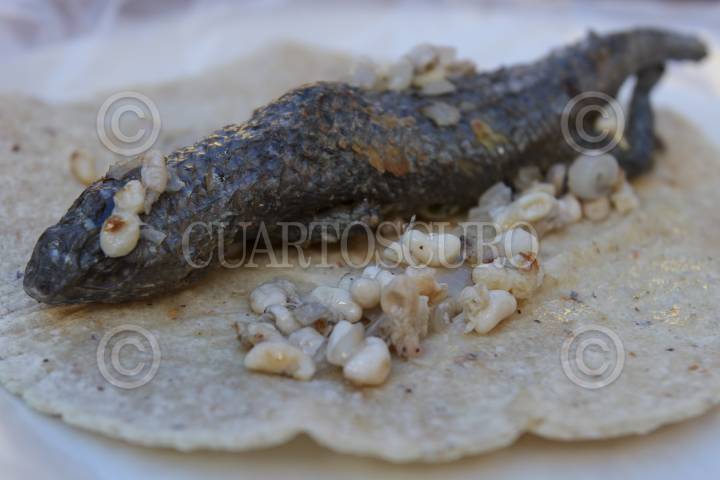 SANTIAGO DE ANAYA, HIDALGO 21ABRIL2014.- Se llevó a cabo la edición de la 34 Feria Gastronómica de comida regional en este municipio. Desde hace 34 años un grupo de comunitarios comenzaron a compartir sus guisos elaborados con animales y plantas endémicas, derivando en un concurso gastrónomico para algunos exóticos, para otros lo único que tal vez se pueda encontrar en esta zona hidalguense del Valle del Mezquital. En ella se pueden degustar comidas elaboradas con ardilla, zorrillos tlacuache, zorro, guajolote; gusanos de maguey, chinicuiles y chicharras, de mezquite (xahües ó samues); viboras, xincoyotes (una especie de reptil parecida a la lagartija); de flores de las cataceas como el garambullo, el xoconoxtle, las tunas, las palmas, del maguey (gualumbos o boalumbos); entre otros platillos de diversa preparación. Además de la gastroomía, esta feria también reune diversas expresiones artísticas y culturales de los ÑhäÑhüs (grupo etnolingüistico característico de la región). FOTO: JUAN PABLO ZAMORA /CUARTOSCURO.COM