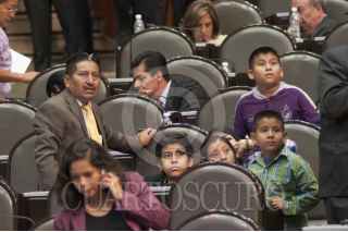 MÉXICO, D.F., 22ABRIL2014- Alfredo Rivadeneyra, diputado del Partido Acción Nacional (PAN); acudió a la sesión en el pleno con sus hijos al Palacio Legislativo de San Lázaro. FOTO: IVÁN STEPHENS /CUARTOSCURO.COM
