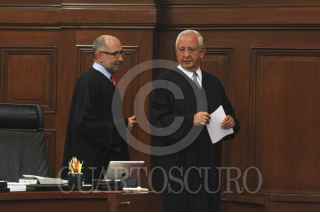 MÉXICO, D.F., 22ABRIL2014.- Los ministros José Ramón Cossío Díaz y Juan N. Silva Meza, durante la sesión en la Suprema Corte de Justicia de la Nación. FOTO: CUARTOSCURO.COM