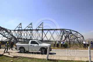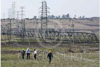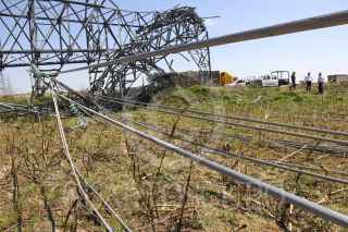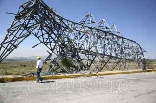 HUHUETOCA, ESTADO DE MÉXICO, 22ABRIL2014.- Cinco torres de alta tensión se vinieron abajo ayer por la noche después de la lluvia y los fuertes vientos, lo que provocó que los cables cayeran en los carriles del Circuito Exterior Mexiquense. Las autoridades policíacas federales determinaron cerrar la vialidad por más de 16 horas. FOTO: LUIS CARBAYO /CUARTOSCURO.COM