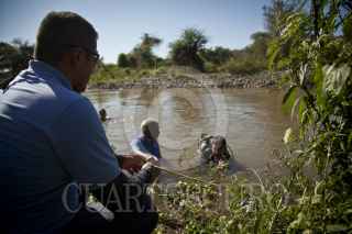 CULIACAN, SINALOA, 22ABRIL2014.- Angel ¨N¨ de 13 años de edad, originario del municipio del municipio de Mocorito, perdió la vida cuando nadaba en compañía de familiares en el río Humaya en el poblado de palos blancos, el menor de edad se encontraba de vacaciones en Culiacán, elementos de bomberos realizaron a lo largo de una hora el cuerpo de la víctima. FOTO: RASHIDE FRIAS /CUARTOSCURO.COM