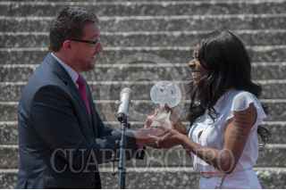 MÉXICO, D.F., 23ABRIL2014.- La cantante española Concha Buika, develó una placa con su nombre en el Paseo de las Lunas al pie del Auditorio Nacional, quien además recibió una Luna del Auditorio. La cantante originaria de Mallorca, ofrecerá un concierto el día de mañana en el Lunario de dicho recinto presentando su espectáculo La noche más larga. FOTO: DIEGO SIMÓN SÁNCHEZ /CUARTOSCURO.COM