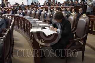 MÉXICO, D.F., 23ABRIL2014.- Alberto Cinta, diputado del PVEM, prepara su discurso para el acto conmemorativo de los 40 años de la Universidad Autónoma Metropolitana en la Asamblea Legislativa del DF. A la cual asistieron en un principio solo 34 diputados, los necesarios para iniciar una sesión reglamentaria. FOTO: MOISES PABLO /CUARTOSCURO.COM