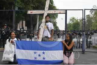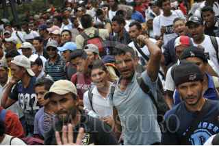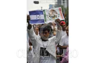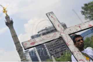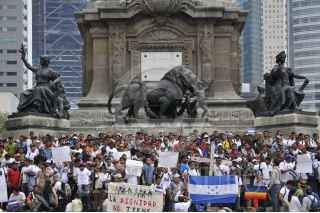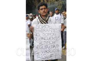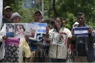 MÉXICO, D.F., 23ABRIL2014.- Cientos de migrantes centroamericanos, quienes partieron el pasado 15 de abril desde Guatemala en viacrucis, arribaron a la ciudad de México para realizar una marcha que partió del Ángel de la Independencia rumbo a Los Pinos, para buscar un dialogo con el presidente Enrique Peña Nieto. Los marcha concluyó en el cruce de calzada Chivatito y Reforma donde una comitiva buscó un dialogo con las autoridades correspondientes. Los migrantes exigían mayor seguridad durante su pasó en México rumbo a Estados Unidos pues denuncian demasiada inseguridad, extorsiones, secuestros, abuso de autoridad, entre muchas irregularidades. FOTO: DIEGO SIMÓN SÁNCHEZ /CUARTOSCURO.COM