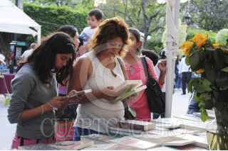 CHILPANCINGO, GUERRERO, 23ABRIL2014.- Mujeres observan algunos ejemplares literarios durante la feria del libro que organiza la dirección de cultura municipal y editorialistas en el zócalo de esta ciudad, en el marco del “Día Internacional del Libro”. FOTO: JOSÉ I HERNÁNDEZ /CUARTOSCURO.COM