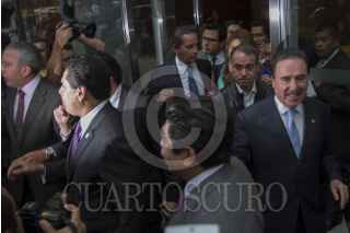 MÉXICO, D.F., 24ABRIL2014.- Emilio Gamboa Patrón, coordinador de la bancada del PRI en la Cámara de Diputados y Raúl Cervantes, Senador del PRI y Presidente de la Mesa Directiva del Senado de la República, a su salida de la reunión privada que sostuvieron los coordinadores parlamentarios. FOTO: GUILLERMO PEREA /CUARTOSCURO.COM