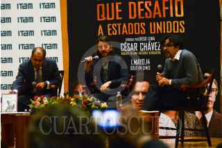 MÉXICO, D.F., 24ABRIL2014.- El actor, y ahora director mexicano, Diego Luna, presentó esta tarde en el Instituto Tecnológico Autónomo de México (ITAM), su nueva película "Cesar Chávez", la cual narra la historia del luchador social mexico-americano del mismo nombre. FOTO: PEDRO ANZA /CUARTOSCURO.COM