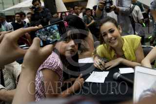 MÉXICO, D.F., 25ABRIL2014.- El elenco de la obra musical Wicked, las actrices Dana Paola, Cecilia de la Cueva, Majo Pérez, Marisol Meneses y Ana Cecilia Anzaldúa, ofrecieron una firma de autógrafos en un centro comercial ubicado sobre Av. Reforma. El elenco presentó “El Torbellino Esmeralda”, una presentación breve de los momentos más significativos de la obra. FOTO: MARÍA JOSÉ MARTÍNEZ /CUARTOSCURO.COM