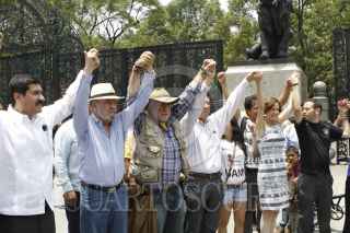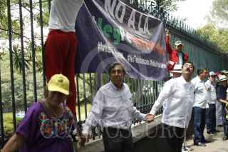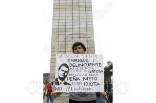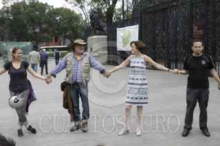 MÉXICO, DF., 26ABRIL2014.- Ciudadanos se manifestaron en la cadena humana para inconformarse contra las leyes secundarias de la Ley de Telecomunicaciones, la cadena se iba a forma de Los Pinos a televisa Chapultepec, pero por falta de organización terminó en un mitin en el Senado de la Republica. FOTO: MOISÉS PABLO /CUARTOSCURO.COM
