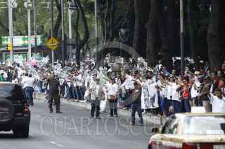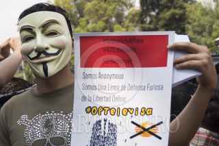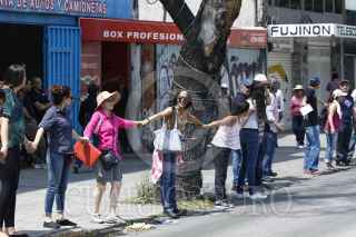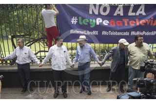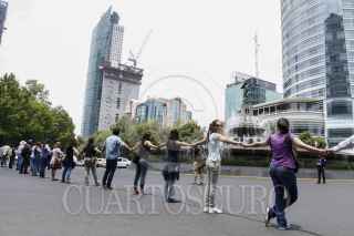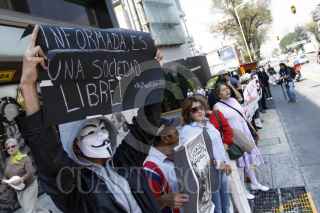 MÉXICO, D.F., 26ABRIL2014.- Ciudadanos se manifestaron en la cadena humana para inconformarse contra las leyes secundarias de la Ley de Telecomunicaciones; la cadena se iba a formar en Televisa Chapultepec hasta Los Pinos. En varias partes del Paseo de la Reforma estuvo semi vació y al final terminó en un mitin en el Senado de la República. FOTO: RODOLFO ANGULO /CUARTOSCURO.COM
