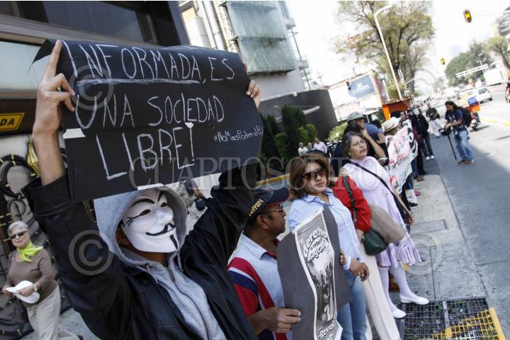 MÉXICO, D.F., 26ABRIL2014.- Ciudadanos se manifestaron en la cadena humana para inconformarse contra las leyes secundarias de la Ley de Telecomunicaciones; la cadena se iba a formar en Televisa Chapultepec hasta Los Pinos. En varias partes del Paseo de la Reforma estuvo semi vació y al final terminó en un mitin en el Senado de la República. FOTO: RODOLFO ANGULO /CUARTOSCURO.COM