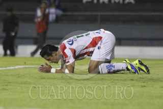 ZAPOPAN, JALISCO, 26ABRIL2014.- Esta noche en el Estadio 3 de Marzo y en partido correspondiente a las Semifinales de vuelta de la Liga de Ascenso MX 2014, se enfrentaron los equipos de Estudiantes Tecos frente a los Rayos del Necaxa. En la imagen el jugador de Necaxa, Eduardo Lillingston se lamenta por que no pudo ser pieza fundamental para que su equipo pasara a la Final de Liga de Ascenso MX 2014. FOTO: FERNANDO CARRANZA GARCIA /CUARTOSCURO.COM