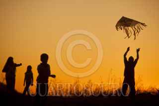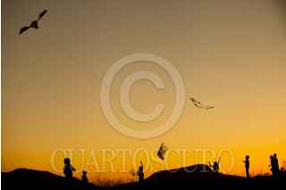 CULIACÁN, SINALOA, 27ABRIL2014.- Niños aprovechan el atardecer para volar papalotes hechos con sus manos, en el último fin de semana de vacaciones. FOTO: RASHIDE FRIAS /CUARTOSCURO.COM