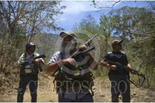 ARTEAGA, MICHOACÁN, 27ABRIL2014.- Alrededor de 500 autodefensas pertenecientes a grupos de diferentes municipios de Michoacán, se encuentran en el municipio de Arteaga, centro de operaciones y cuna del único líder que queda con vida de los Caballeros Templarios, los civiles armados se encuentran peinando la sierra y los escondites del capo michoacano, de quién según información proporcionada por el coordinador general, se encuentran muy cerca de su captura. FOTO: ALAN ORTEGA /CUARTOSCURO.COM