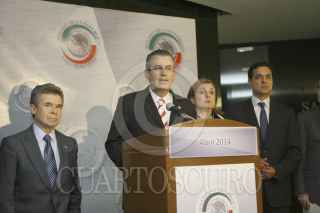 MÉXICO, D.F., 29ABRIL2014.- En el Senado no se lograron acuerdos en torno a la reforma político-electoral, que irá a un periodo extraordinario de sesiones como ocurrió antes con la de telecomunicaciones. Las negociaciones que se llevaban a cabo entre PRI, PAN y PRD se suspendieron por la noche, a petición del PAN, quien pidió tiempo y luego, anunció en conferencia de prensa que no era posible lograr el consenso en las próximas horas. El panista Héctor Larios señalo al respecto que aunque hubieran sesionado toda la noche, "humanamente era imposible" lograr los consensos en torno a las tres leyes fundamentales que son la ley de instituciones y organismo electorales (LEGIPE), ley de partido político y ley de medios de impugnación. FOTO: CUARTOSCURO.COM