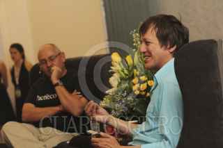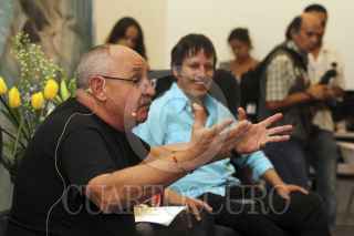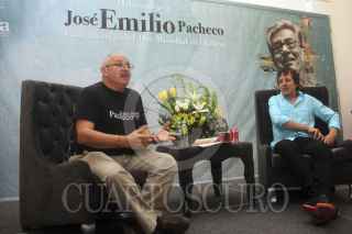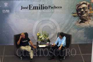 GUADALAJARA, JALISCO, 29ABRIL2014.- Esta noche en las instalaciones del Museo de las Artes (MUSA) de la Universidad de Guadalajara y en el marco de las actividades de la lectura en voz alta por el Día Mundial del Libro que organiza la Feria Internacional del Libro en Guadalajara, se llevo a cabo el dialogo publico denominado “La Ciudad y la Memoria” en torno a la figura y obra del escritor José Emilio Pacheco, entre los escritores Benito Taibo (México) y Xavier Velasco (España). FOTO: FERNANDO CARRANZA GARCIA /CUARTOSCURO.COM