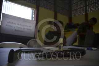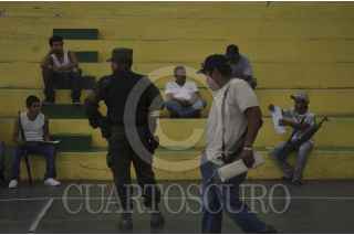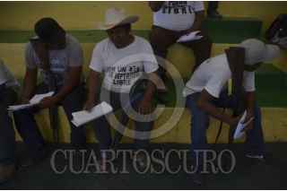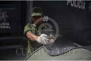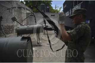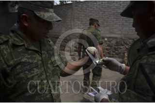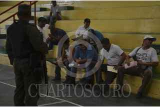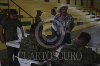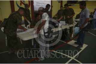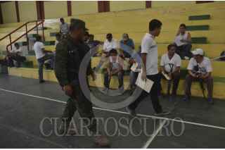 NUEVA ITALIA, MÚGICA, MICHOACÁN 29ABRIL2014.- Elementos adscritos a la 43 zona militar del ejército mexicano, se encuentran en un rally por las municipalidades del estado de Michoacán en dónde las autodefensas tienen control de la seguridad, estos grupos tienen que registrar todas sus armas del 28 de abril hasta el 10 de mayo esto para componer la nueva policía estatal rural que estará adscrita al Ejército mexicano. Parte de la legalización incluye el módulo de toma de huella balística, en esta ocasión acudieron al municipio de Múgica en la cabecera de Nueva Italia. FOTO: ALAN ORTEGA /CUARTOSCURO.COM