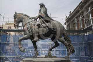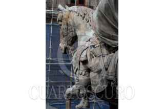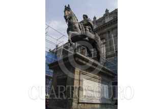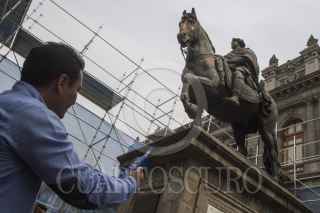 MÉXICO, D.F., 30ABRIL2014.- Autoridades del Fideicomiso del Centro Histórico presentaron el Proyecto de investigación científica para la restauración de la escultura ecuestre de Carlos IV y su pedestal, realizada por Manuel Tolsá. FOTO: ISAAC ESQUIVEL /CUARTOSCURO.COM