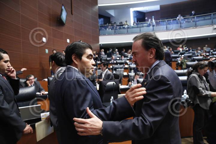 MÉXICO, D.F., 30ABRIL2014.- Los senadores Emilio Gamboa Patrón, Fernando Mayans, Jorge Luis Preciado y Luis Barbosa, durante la última sesión del período ordinario. FOTO: CUARTOSCURO.COM