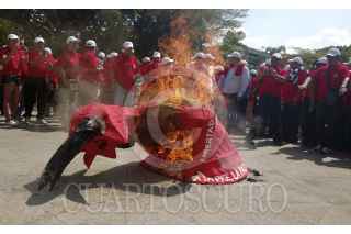 CUERNAVACA, MORELOS, 01MAYO2014.- Como cada año, trabajadores realizaron la quema de un muñeco que representa al demonio. El acto corresponde a la creencia de que por medio de la quema todos los males se van, entre uno de ellos la inseguridad. FOTO: CUARTOSCURO.COM